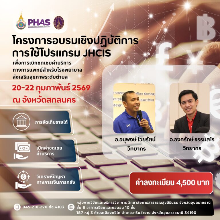 โครงการอบรมเชิงปฏิบัติการ “การใช้โปรแกรม JHCIS เพื่อการเบิกชดเชยค่าบริการทางการแพทย์สำหรับโรงพยาบาลส่งเสริมสุขภาพระดับตำบล”