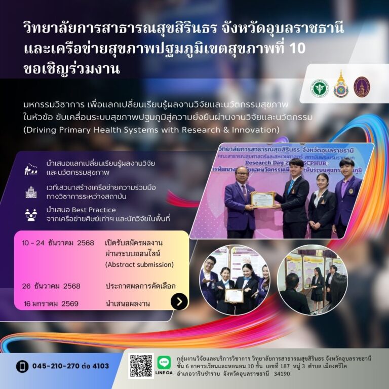กลุ่มงานวิจัยและบริการวิชาการ วิทยาลัยการสาธารณสุขสิรินธร จังหวัดอุบลราชธานี