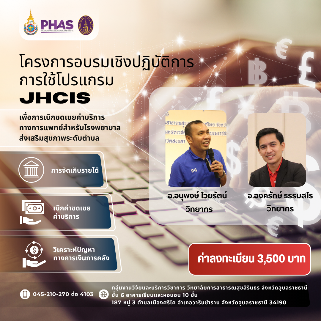 โครงการอบรมเชิงปฏิบัติการ “การใช้โปรแกรม JHCIS เพื่อการเบิกชดเชยค่าบริการทางการแพทย์